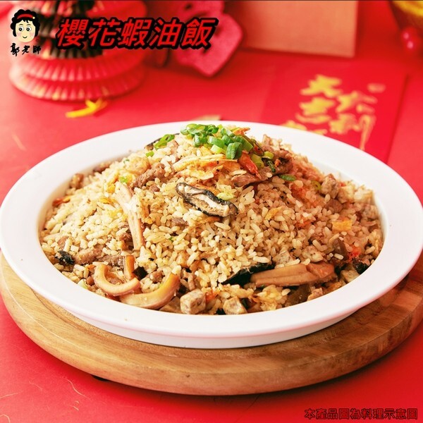 櫻花蝦油飯:嚴選長糯米,香氣十足,口感軟Q,選用東港櫻花蝦、阿根廷魷魚、優良認證國產豬肉,選用以古法研製信成麻油,充滿鮮甜及濃郁的香味,料多扎實滋味鮮美。