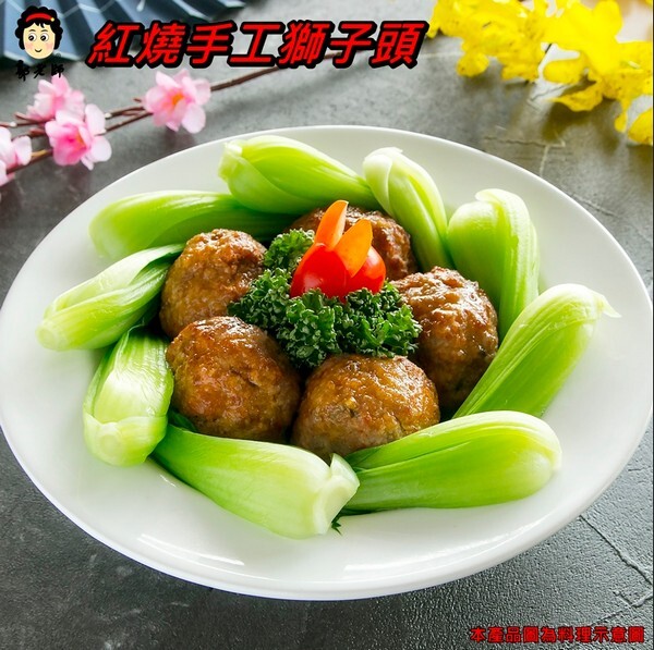 紅燒手工獅子頭:嚴選CAS合格豬肉,肥瘦比2:8,口感適中不油膩,簡單調味搭,附上天然熬煮的豬肉高湯,可自行搭配大白菜/高麗菜一起煮,鮮甜美味,完全不需加任何調味料。