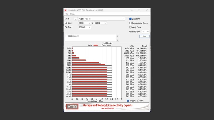 ATTO Disk Benchmark 的表現很奇怪,到後面讀寫速度居然能突破極限,直接衝到不知道哪裡去。不過撇除掉程式可能偷幫我灌水的部分,以讀寫速度的圖表來說是蠻穩定的。
