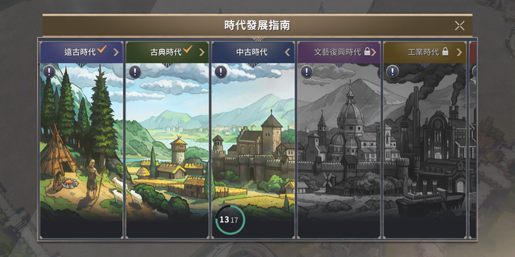 在文明帝國中有時代的發展,只要達成發展條件就可以提升時代,