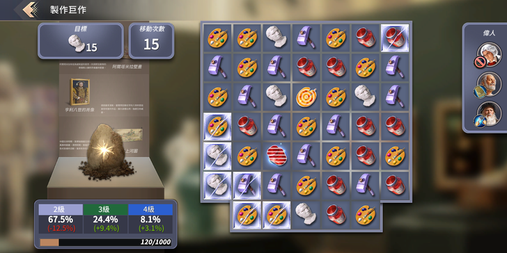遊戲中多達120多種的巨作,要拿到真的就只需要會三消就好