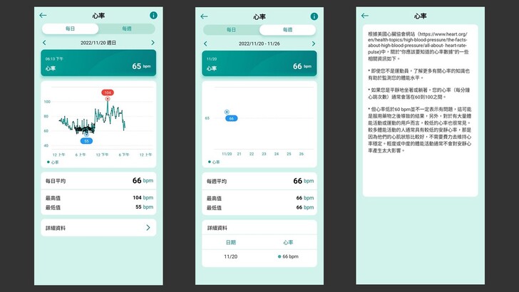 不知該說太幸運還是太不幸,我在拿到手錶後幾天就確診了。印象最深的是發病前一晚,我躺在床上看到心率跳到 100 多下。那時我仍抱有一絲沒確診的希望,但在看到這數字後,我確定了病毒並沒有放過我 XD。心率測量部份,清醒時大約是十分鐘測量一次,而睡眠時則是幾乎每分鐘都測量一次。