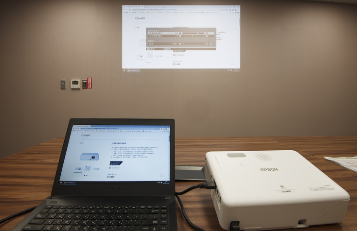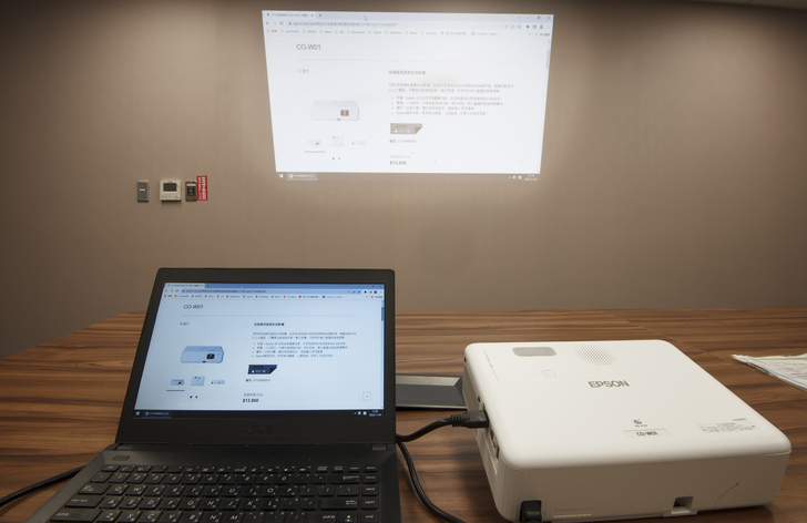 Epson CO-W01 簡約的外型,再加上輕巧的重量!在攜帶上十分便利,另外,本體單一按鍵的設計,真的很容易上手,進入的門檻幾乎為0。3LCD 的技術,讓投影的畫質提昇,3000 流明的彩色與白色亮度和 WXGA 的解析度(1280*800),可輕鬆投影百吋以上畫面,不關燈也能清楚投影。如果再另購模組(ELPAP11),可馬上擁有無線功能,讓分享更為便捷。