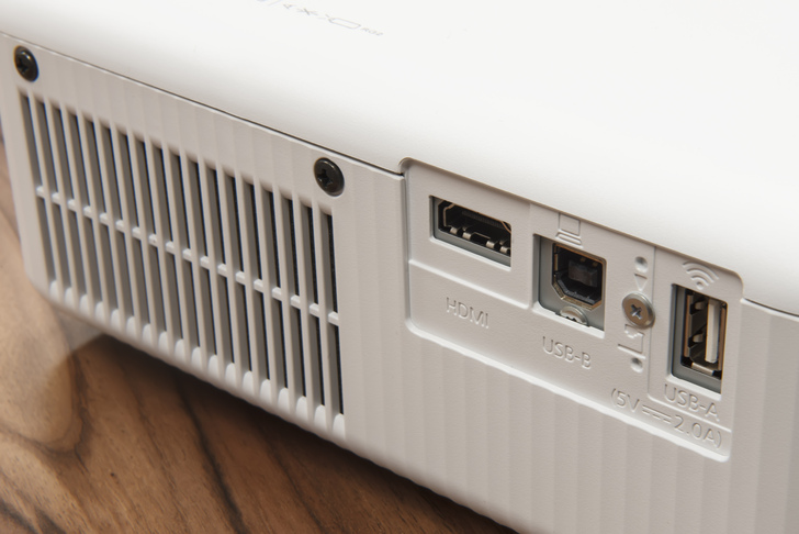 ▲提供了 HDMI/USB 介面(另購配件,可無線投影),USB-A 還可提供 5V/2A 供電