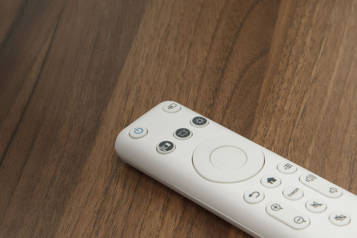 ▲遙控器提供開關機/梯形校正/明亮度/音量大小……等較常使用的功能,操作介面更直覺、使用更簡單
