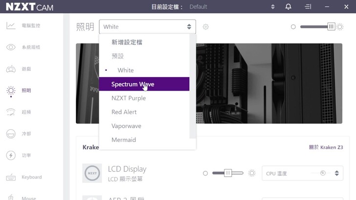 NZXT 的軟體我覺得也很不錯,不會像有些廠商的軟體很像 10 年前 UI 沿用至今。而且 NZXT 的軟體除了控制燈光之外,還有很多監控和簡單的超頻功能,不過超頻的可調程度不大,基本上想超頻還是靠 BIOS 比較有彈性。