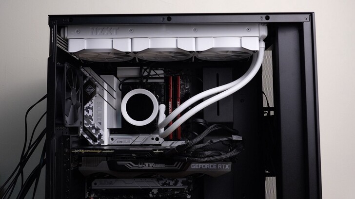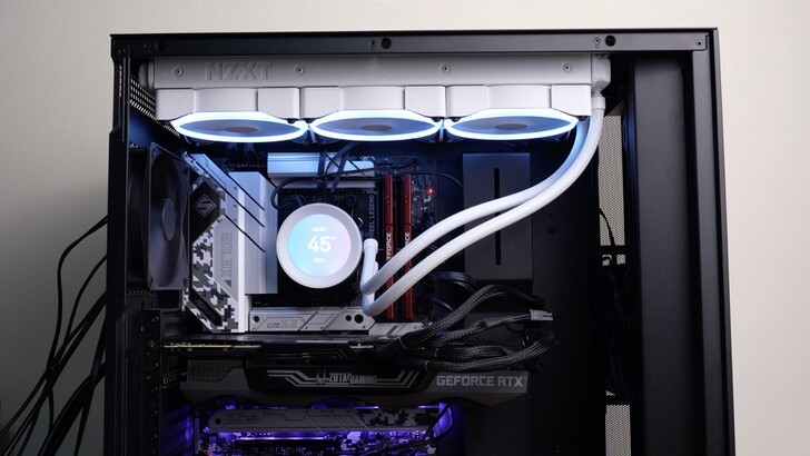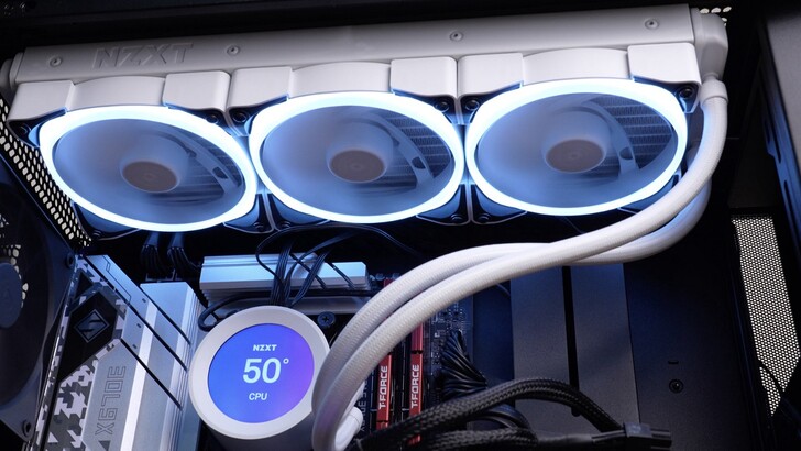 按下開機鍵亮起來之後真的相當好看!注意力完全會被從旁邊的線拉到螢幕上。不過還是希望 NZXT 能研發個黑科技之類的,直接把電線藏在水冷管或是哪邊,給整線強迫症患者一個非買他不可的理由。