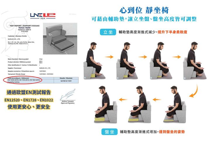 「心到位冥想沙發」可以七段高度調整,各種身形都適用,減少腰痛、腳麻、臀酸的問題,另外5層材質複合坐墊,使用抗菌布料,就連後靠枕背與扶手通通有,不管是靜坐或是當一般座椅使用都OK,坐墊椅的顏色也不俗氣,奶茶、椰綠、高雅的亞麻灰都能選,擺在家裡客廳不突兀。詳閱:https://www.qushop.net/SalePage/Index/7984072