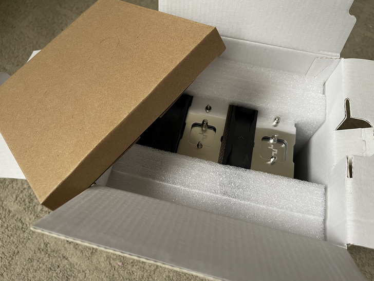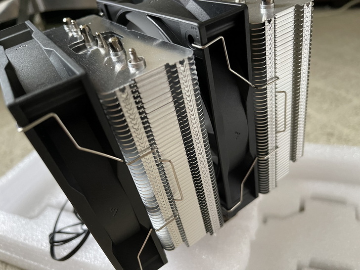 九州風神AG620的風扇是直接裝好在散熱器上,難怪盒子體積比較大,這樣是方便許多,但安裝時還是要先取下一顆風扇來鎖螺絲