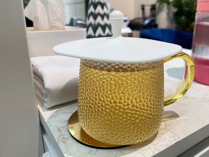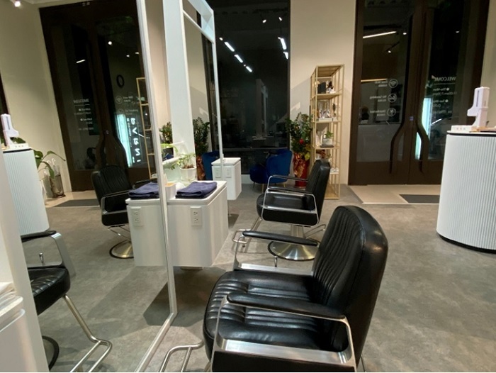 髮廊的裝潢是白色為主金為輔的輕奢風格,整體環境很舒適