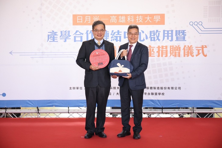 今(27)日在高科大舉行「日月光產學合作鏈結中心揭牌暨捐贈儀式」,包括電電公會理事長暨日月光高雄廠資深副總周光春、高科大校長楊慶煜、夥伴學校-正修科大副校長黃柏文、樹德科大校長陳清燿、中正高工校長高瑞賢以及產官學各界貴賓參與盛會。