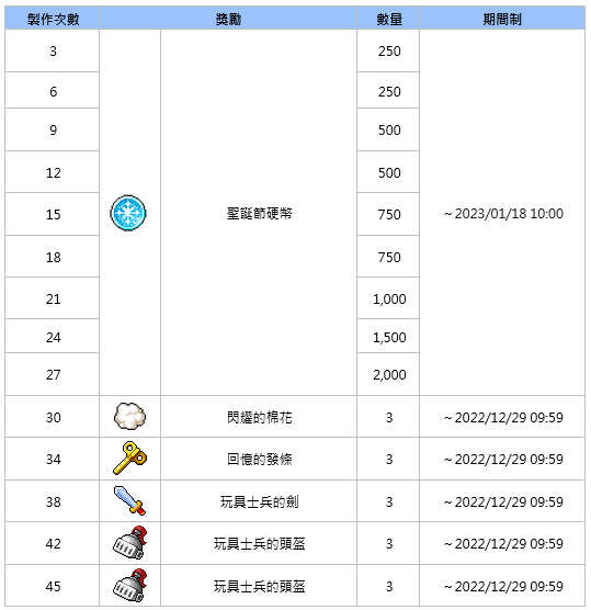 活動期間:2022/12/15 (四) 更新後~2022/12/29(四) 09:59 (伺服器時間)