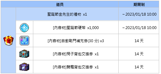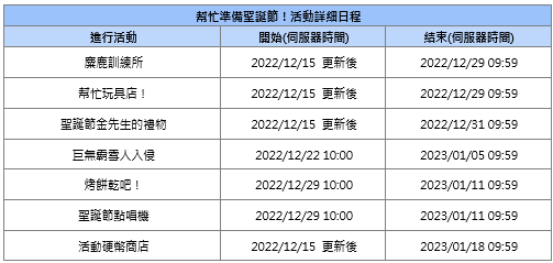 活動期間: 2022/12/15 (四)更新後~2022/12/31(六) 09:59 (各伺服器時間)