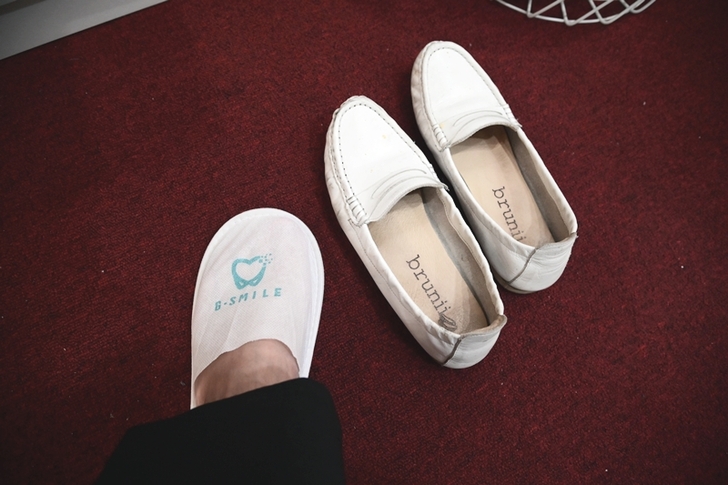 掛號前護理師會協助訪客在門口進行室內鞋更換