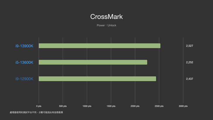 CrossMark 中,三顆處理器的分數也整理如圖。