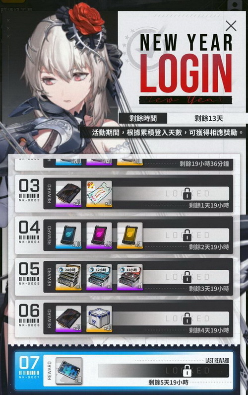 期間內的7天內,每日登錄就可獲得獎勵,其中也有抽卡券!