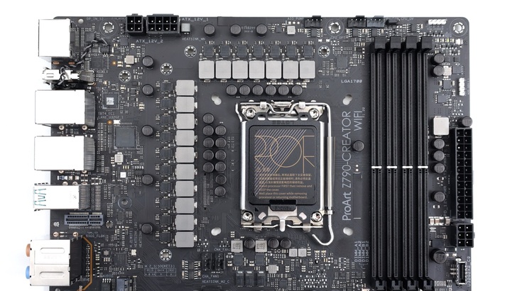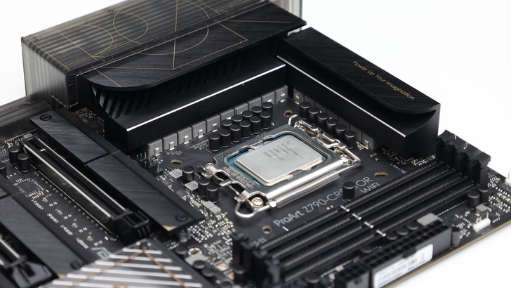 ProArt Z790-Creator WiFi 主機板依舊是 ProArt 方正格局,黑色為主要用色,搭配金色線條點綴。ProArt Z790 在視覺設計上與上一代 ProArt Z690 相異甚少,外觀改動幅度小於前兩代的變化。相對於遊戲用途取向的主機板,ProArt 的定位是給創作者,因此除了在外觀上不會有那麼多電競感,在實際硬體設計上也會特別優化。例如我們平常多少都會碰到 3D 建模、渲染、影片剪輯、修圖……等。如果是以此為生的工作者,有時影片剪輯後,接著就是讓電腦全力跑輸出,一跑就是幾小時、半天甚至一天。或是影片渲染,一跑就是好幾天到幾個禮拜。這時 CPU 幾乎都是滿載運作,對主機板的供電和散熱要求就會比較高,那麼定位創作者使用的主機板,就比較會考量到這樣族群的使用情況。