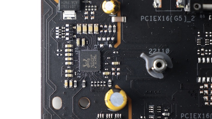 PCIe x16_1 為 CPU 直連,有金屬強化外殼,最高支援 PCIe Gen5 x16。PCIe x16_2 有金屬強化外殼,可以與 PCIe x16_1 同時作為 PCIe x8 + x8 模式。