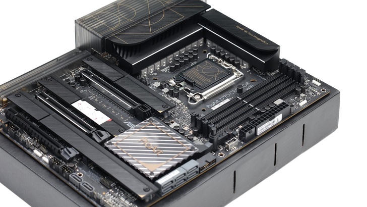CPU 採用 Intel LGA1700 Socket,支援 Intel 第 12 代 Alder Lake 和第 13 代 Raptor Lake 的處理器。記憶體為 DDR5 四根插槽,最高容量 128GB。三條 PCIe x16、四條 M.2 和八個 SATA。主機板支援 LGA1700 和 LGA1200 的散熱器扣具。隨著處理器對記憶體控制的效能增加,規格列出記憶超頻的頻率有大幅增加。