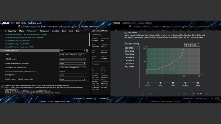 在 Ai Tweaker 中,也可以看到 XMP 的選項和超頻相關設定。Q-Fan Control 可以獨立控制每個風扇接頭的曲線。