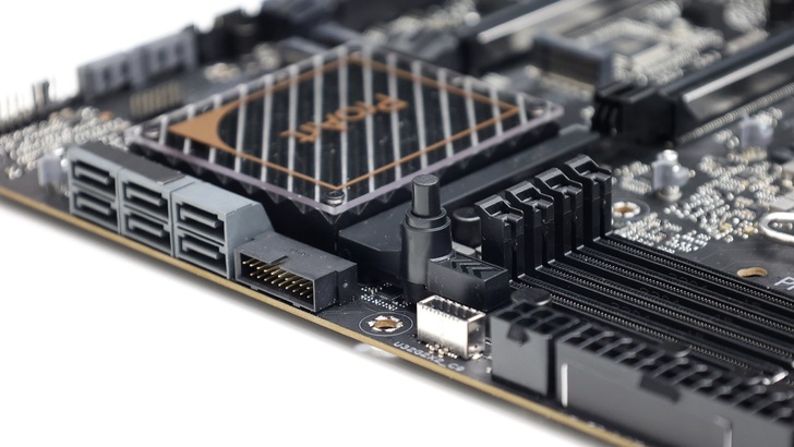 隱藏在側邊 VRM 下方的還有一塊獨立的散熱片,是實心沒有剖溝,主要幫助 10GbE 網路晶片散熱。