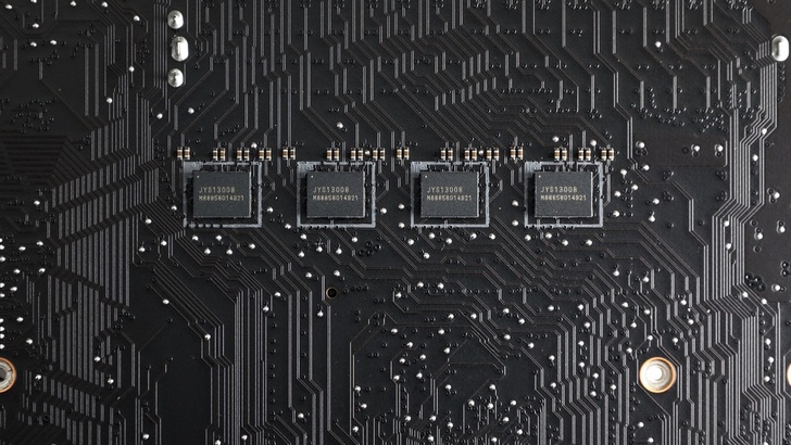 主機板背面有四顆 LeRain Technology 的 JYS13008,為 PCIe Gen5 MUX。