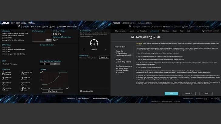右上角 AI Overclocking 可以快速調整不同等級的使用狀態,對新手尤為方便。