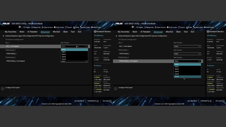 在 Advanced 中,可以調整 CPU 直連的 PCIe 通道,以哪一個協議連接。