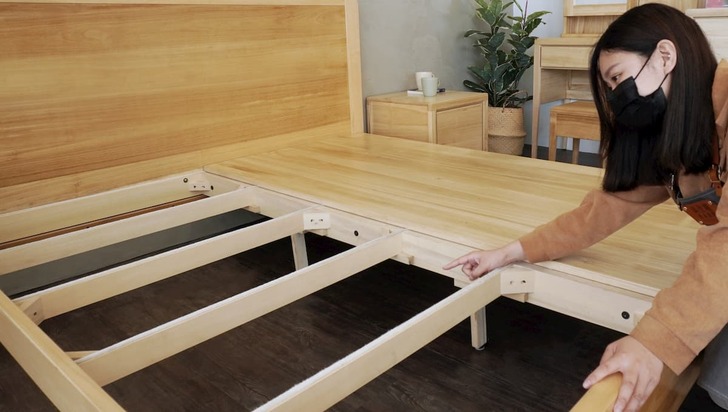 高仕隆原木傢俱專利框架,打造穩固耐重且無異音的床。(圖/高仕隆原木傢俱提供)