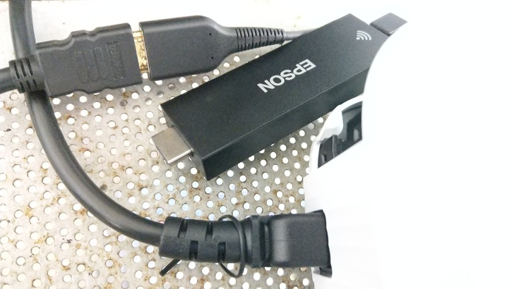 因為『Epson CO-FH02』機器本身只有一個HDMI 接口,而且預設就是接上Android TV 電視棒,所以,需要先拔掉Android TV 電視棒的HDMI,再另外用HDMI 線接到電腦!