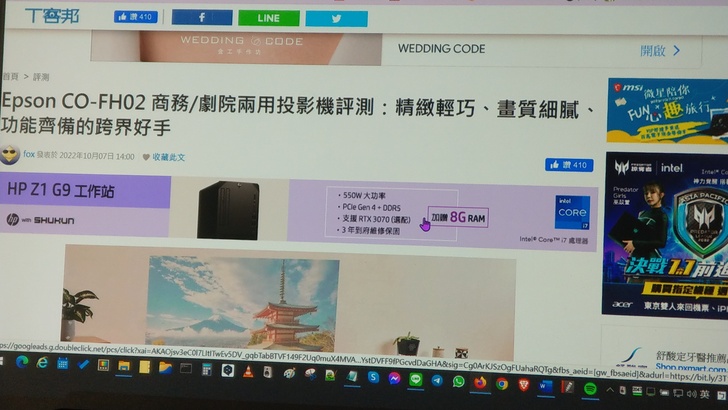 這次【Epson 住商兩用高亮彩智慧投影機CO-FH02】體驗測試, 了解此款Epson 新推出的住商兩用投影機,搭載 16:9 的 1920 x 1080 投影晶片,3LCD 技術高畫質投影,使其具備彩色/白色亮度3,000 流明,即使在開燈的狀態下,都能投射出清晰的影像,足以對應不同的使用環境,「場景自適應伽瑪係數」功能,可確保畫質表現的穩定性,全面滿足商務與家庭用家的所有需求。機身設計走白色極簡風格,顯得更為時尚美觀。投影畫面可以看到影像的細節,色彩層次及飽和度很好,解析度和景深效果也很不錯。愛看電影、追劇或玩電競遊戲的人,可以用超過百吋的畫面觀看,如果加上外接劇院級別的喇叭或耳機,相信絕對有相當沉浸其中的感覺!如果正好有這方面的需求,手上又有些預算,想提早體驗Epson 的最新產品力作,相信這台【Epson 住商兩用高亮彩智慧投影機CO-FH02】,會帶給你不凡的享受體驗過程!