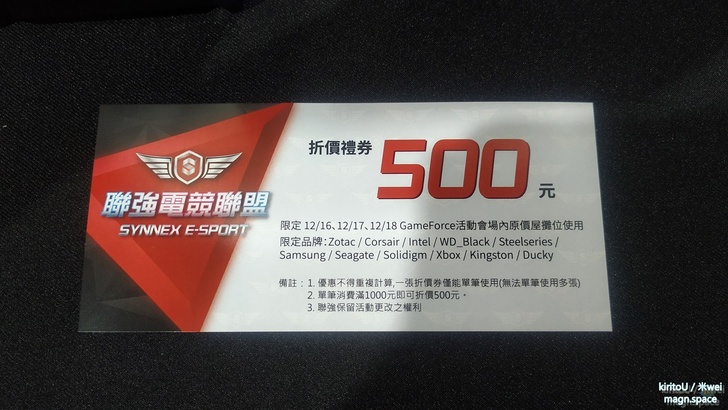 這次GAMFORCE 2022到目前為止雖然我還沒抽到任何東西,包括GAMFORCE社團內的活動,但在現場有買到原價屋優惠價的活動商品,那條金士頓NV2 1TB SSD價格實在是太誘人,加上聯強的折價禮券500元,那條SSD就算是QLC也是有夠香的啦!就算是自己的禮物自己買吧?不過還是希望活動心得分享有個分子的機會。