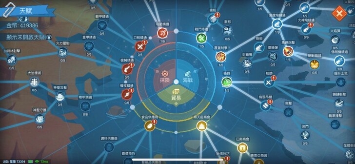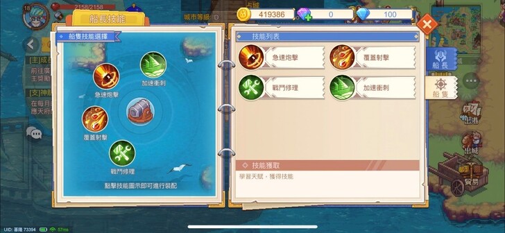 學習天賦是在這個遊戲最為重要,天賦是用來解鎖船長技能及船隻技能,讓你在戰鬥時可以利用技能來取得勝利。