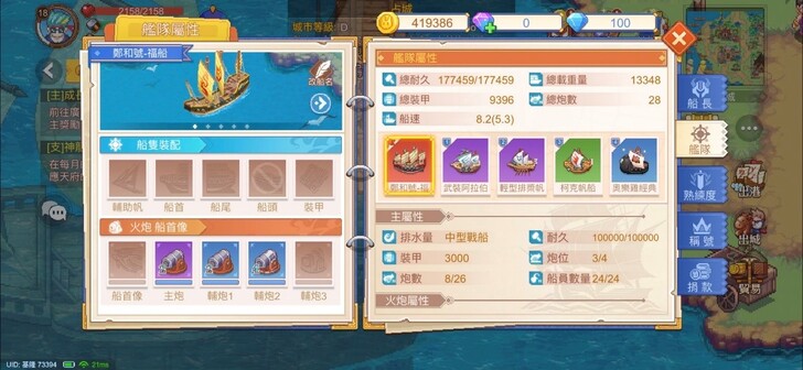 船艦的屬性可以讓你了解每艘船的屬性及砲火屬性,讓你在戰鬥前可以用最適合自己的艦隊來打敗倭寇或海怪。