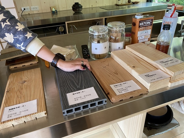 實際參觀後,發現在這個行動木屋各種原木材質的選擇上,有其用心之處。
