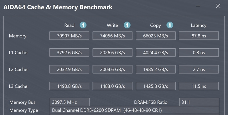超頻至 DDR5-6200 寫入頻寬大幅增加