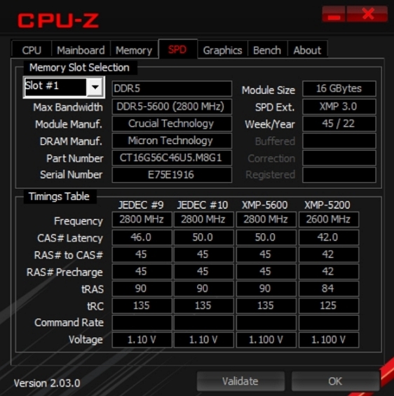 透過 CPU-Z 偵測 SPD 參數,製造週期以及顆粒是美光自有