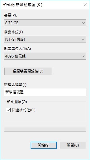 重要信息:格式化分割區將刪除分割區上的所有資料。因此在格式化分割區之前,請注意將資料備份到另一個分割區。