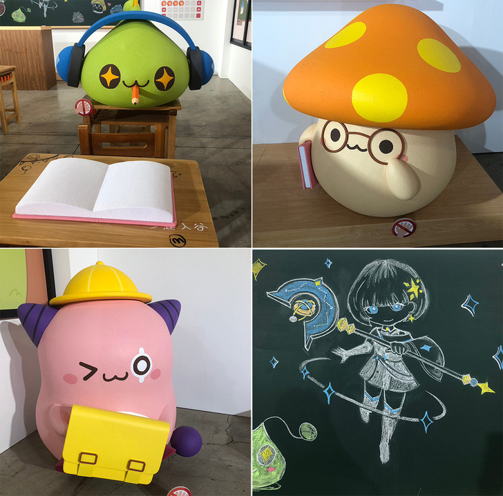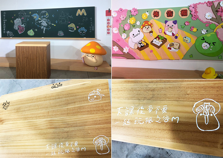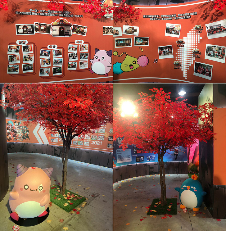 造景有分為粉色櫻花、紅色楓葉、繽紛糖果及楓谷教室