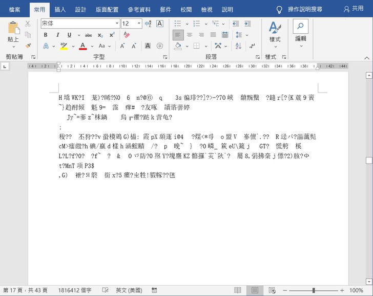 Word文檔打開亂碼,有可能是檔案格式出現問題,也有可能是word亂碼中毒或惡意軟體攻擊,還有可能是檔案被破壞等原因造成。當您遇到Word亂碼、word目錄亂碼或是word頁碼亂碼時,只會看到一堆無法閱讀的文字、問號或符號(如下圖所示),相信看到這種情形的您會很頭疼吧。但是別擔心,這些docx亂碼還原的方法可能幫助到您。