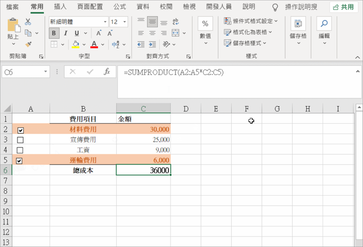 從上動畫中可以看出,在費用項目前的方框內打勾後發現行填充色和字體都會變色,另外,該行D列的金額會匯總到總成本內(D7單元格)。是不是炫酷又實用? !想學習嗎?我們一起試試吧: