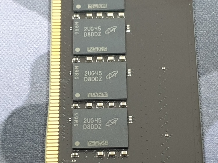 ▼採用單面顆粒佈局,清楚標示出 2UG45 D8DDZ,左右兩邊各有四顆記憶體顆粒。