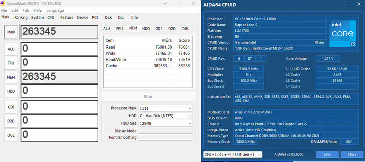 RAM:Crucial DDR5 5600 32GB Kit / 5600 46-45-45-90