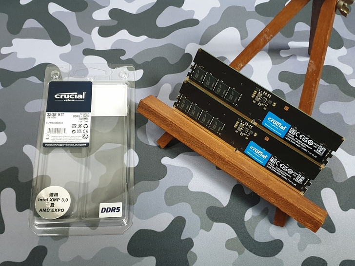 ▼美光 Crucial DDR5-5600 32GB kit桌上型記憶體特寫。