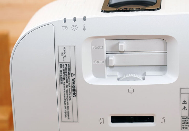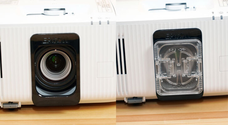 EH-TW6250 的鏡頭隱藏至模組後方,並提供一組透明的防塵蓋,鏡頭本身採 1.6 倍變焦,可在不同距離下投影 40 至 500 吋的畫面。