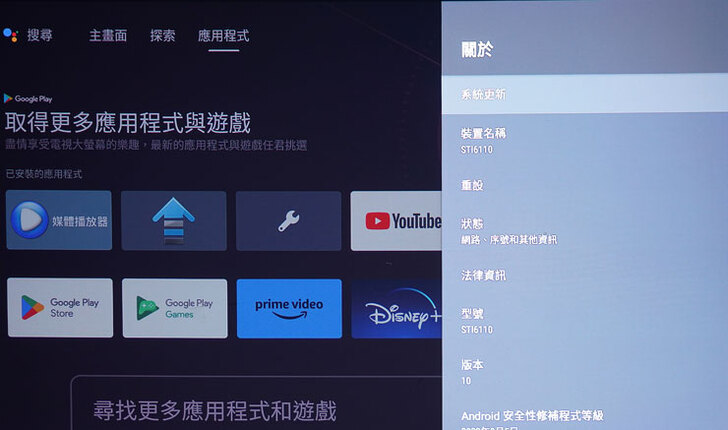 在關於系統中可看到 EH-TW6250 採用了 Android TV 10 作業系統。