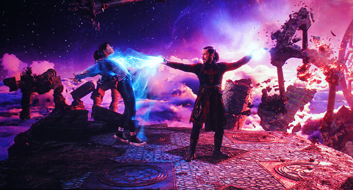 支援 4K HDR10 的《奇異博士 2:失控的多重宇宙》中有不少場景可以展現出 EH-TW6250 色彩飽和度與高對比度顯示效果。