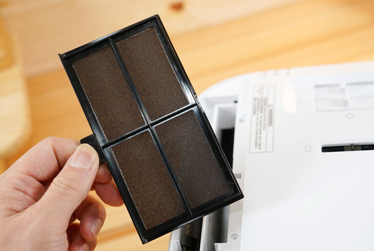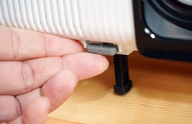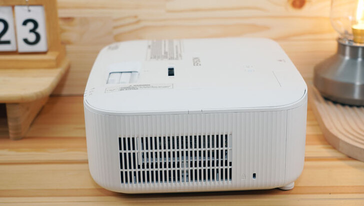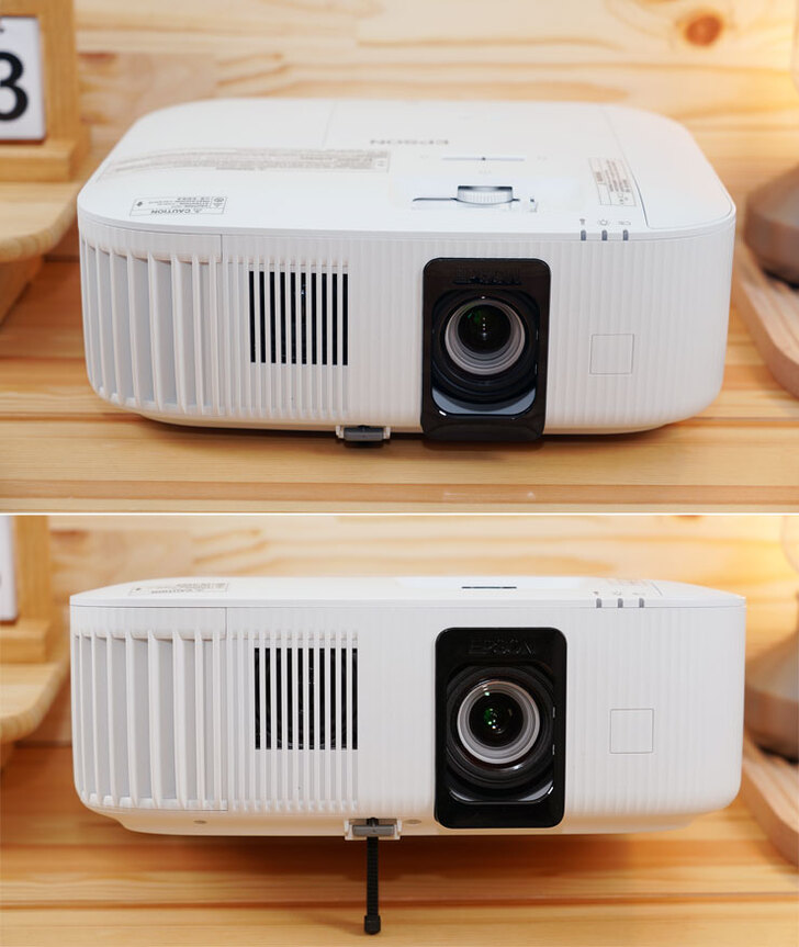 在外型設計方面,EH-TW6250 擁有 Epson 家庭劇院投影機系列相同的風格,整機偏向方正設計,但邊角的大曲度弧面也讓機身線條些許圓潤,比較特別的是投影機的鏡頭採半隱藏式搭配黑框模組,相較過去外露的設計有些許不同。此外,在散熱方面,EH-TW6250 在機身價面與前方都設有進氣口,也因此在擺放時不需要保留側面或背面的空間,再加上鏡頭位移提供垂直正負 60% 調整與左右側 30 度的梯型校正範圍,讓 EH-TW6250 在安裝時更具彈性。
