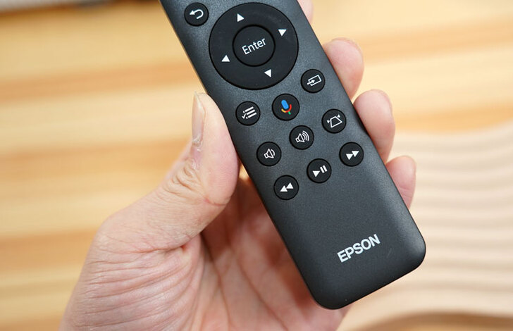 EH-TW6250 同時提供兩組搖控,其中左邊這一組為 Android TV 電視棒的控制功能,但實際上右邊的搖控也提供智慧系統的控制,並整合了投影機的設定功能。