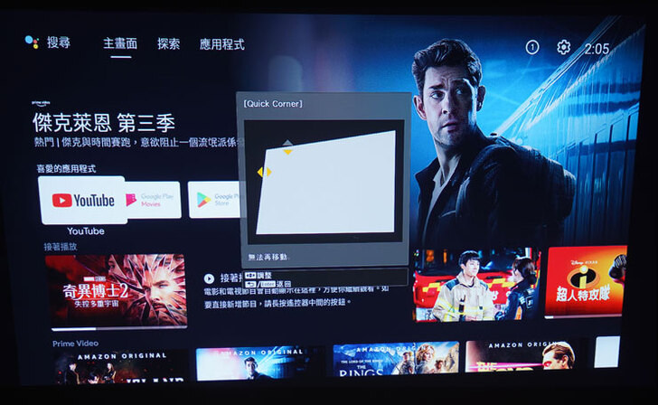 EH-TW6250 本身具備 2800 流明的白色 / 彩色亮度,也因此在一般光源下也能有不錯的觀看效果,圖上為燈光全關的畫面翻拍,而圖下則開啟一般的吸頂燈的畫面顯示效果,可以發現除了對比度略為下降,畫面的清晰度與色彩飽和度效果仍舊優異。
